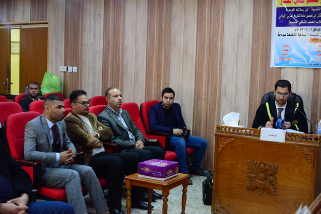 ناقشت كلية التربية ابن رشد للعلوم الإنسانية رسالة الماجستير الموسومة بــ (أثر استراتيجية (استمع – اقرأ– ناقش) في تحصيل مادة التاريخ العربي الإسلامي واستبقائها لدى طلاب الصف الثاني متوسط) للطالب مسلم عقيل المختار من قــــســــم (الــــعــــلــــوم الــــتـــربــــويــــة والــــنــــفــــســــيــــة) تخصص (طرائق تدريس التاريخ) وبإشراف الأستاذ المساعد الدكتور محمد شلال عبيد، في تمام الساعة التاسعة صباحاً من يوم الاثنين الموافق 2/1/2017 في قاعة (أ.د عبد العزيز البسام).
