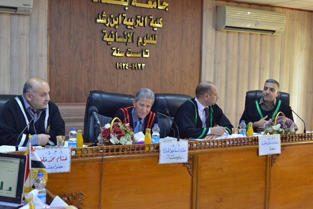 وقد وافق مجلس الكلية بجلسته السابعة عشر المنعقدة في 2017/5/23 على تشكيل لجنة المناقشة من السادة المدرجة اسمائهم ادناه :