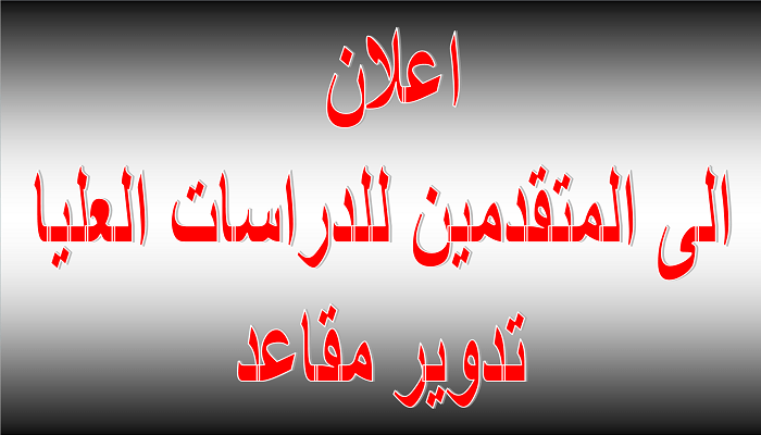 الى الطلبة المقدمين للدراسات العليا للعام الدراسي 2021/2022 الراغبين بتدوير مقاعدهم من مقعد القبول العام الى مقعد القناة الخاصة تقديم طلباتهم الى شعبة الدراسات العليا في كليتنا بموعد اقصاه نهاية الدوام الرسمي ليوم الخميس الموافق 12/8/2021 علما ان الاختصاصات المتوفرة هي كالاتي :-