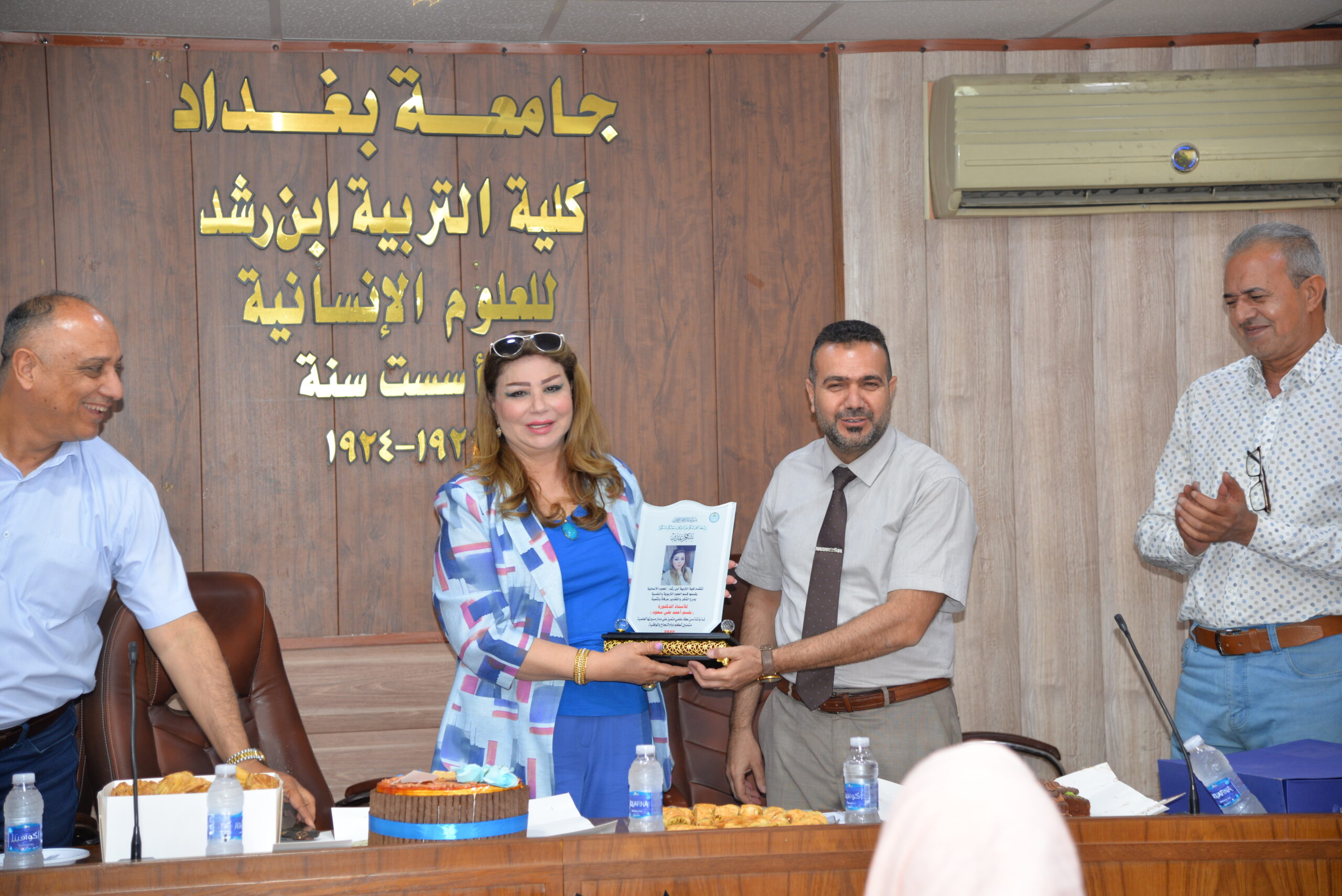 في اطار الاحتفاء بالتدريسيين الكبار علما وشأنا وتكريما لجهودهم التي بذلت طوال مدة خدمتهم في الحياة العلمية والعملية ، احتفى قسم العلوم التربوية والنفسية بالاستاذة الدكتورة بلسم احمد علي السامرائي بمناسبة احالتها على التقاعد صباح يوم الثلاثاء الموافق 14/6/2022 ، وبتوجيه ونيابة عن السيد عميد الكلية الاستاذ الدكتور علاوي سادر جازع القى السيد معاون العميد للشؤون الادارية كلمة اثنى فيها على جهود التدريسية وتفانيها واخلاصها في عملها ، وكان الاحتفال برعاية اللجنة الاجتماعية في القسم المذكور وبإشراف مباشر من السيد رئيس القسم الاستاذ الدكتور خالد جمال جاسم .