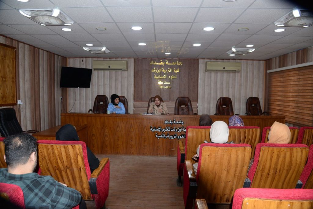 برعاية عميد كلية التربية ابن رشد للعلوم الإنسانية الأستاذ الدكتور علاوي سادر جازع اقام قسم العلوم التربوية والنفسية وبالتعاون مع التعليم المستمر ورشة بعنوان “التمكين المعرفي للمرأة ” حاضر فيها كل من م.م نور إحسان علي حيدر و م.م مروة كريم ناصر.
