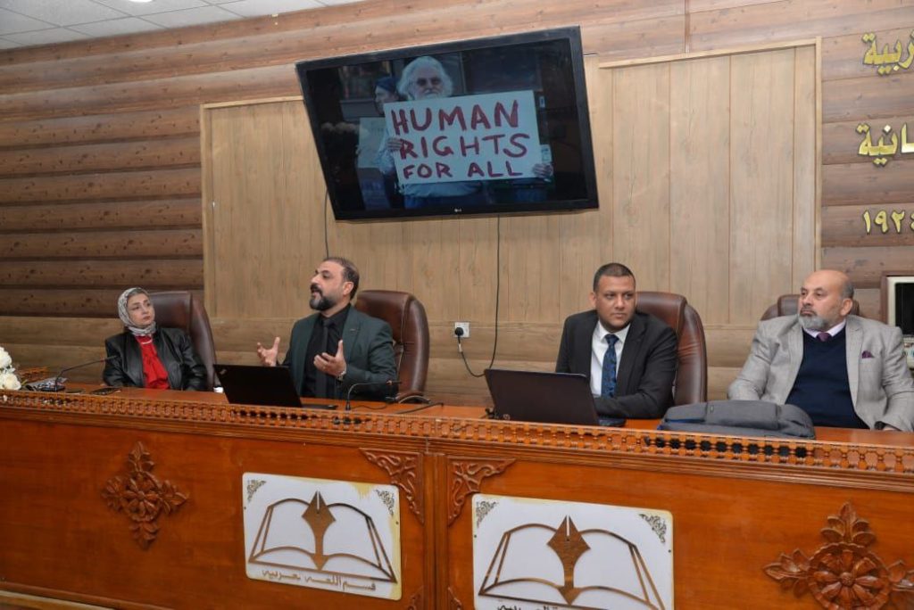 اقامت الوحدة التربوية لدراسات السلام وحقوق الإنسان وبالتعاون مع وحدة التعليم المستمر في كلية التربية ابن رشد للعلوم الإنسانية والمفوضية العليا لحقوق الإنسان دورة تدريبية بعنوان (حرية المعتقد للأقليات الدينية وحماية التنوع في العراق) حاضر فيها كلاً من المدربين الدوليين المعتمدين لدى المفوضية العليا لحقوق الانسان الدكتور ياسر مظهر والمدرب علي حسين جوي والمدرب رفل سليم ناجح .