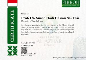 تم اختيار الاستاذ الدكتور سعاد هادي حسن الطائي التدريسية في قسم التاريخ بكلية التربية ابن رشد للعلوم الانسانية في جامعة بغداد عضو في هيئة تحرير مجلتين عالميتين تصدران في اندونيسيا .