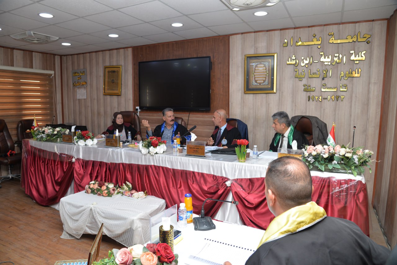 شهدت كلية التربية ابن رشد للعلوم الانسانية بجامعة بغداد مناقشة رسالة الماجستير بعنوان (السلوك الإجرامي وعلاقته بالتنظيم الذاتي عند الأحداث الجانحين) ,للباحث من قسم العلوم التربوية والنفسية (تيسير غريب خضير) تخصص العمليات النفسية, و تألفت لجنة المناقشة من الاستاذ الدكتور صفاء طارق حبيب رئيسا ,والاستاذ الدكتور ياسين حميد عيال عضوا ومشرفا ,والاستاذ المساعد الدكتور محمد شلال عبيد عضوا , مع الاستاذ الدكتور لطيفة ماجد محمود بصفة عضوا خارجيا من كلية التربية للعلوم الانسانية / جامعة ديالى.