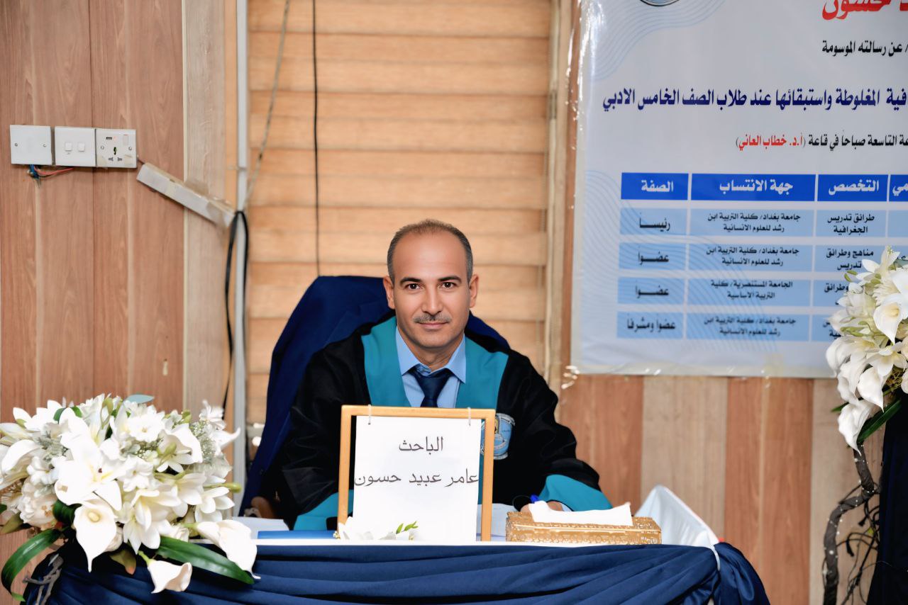 ناقشت كلية التربية ابن رشد للعلوم الانسانية بجامعة بغداد رسالة الماجستير الموسومة بــ(اثر استراتيجية التعديل المفاهيمي في تصحيح المفاهيم الجغرافية المغلوطة واستبقائها عند طلاب الصف الخامس الادبي) للباحث من قسم الجغرافية (عامر عبيد حسون علاوي) تخصص طرائق تدريس الجغرافية, وتألفت لجنة المناقشة التي ترأسها الاستاذ الدكتور ثناء يحيى قاسم ,وعضوية واشراف الاستاذ الدكتور نجدت عبد الرؤوف عبد الرضا, وعضوية الاستاذ المساعد الدكتور اسماعيل حسن عبدالله ,مع الاستاذ المساعد الدكتور ابتسام خلف جواد بصفة عضو خارجي من كلية التربية الاساسية / الجامعة المستنصرية .