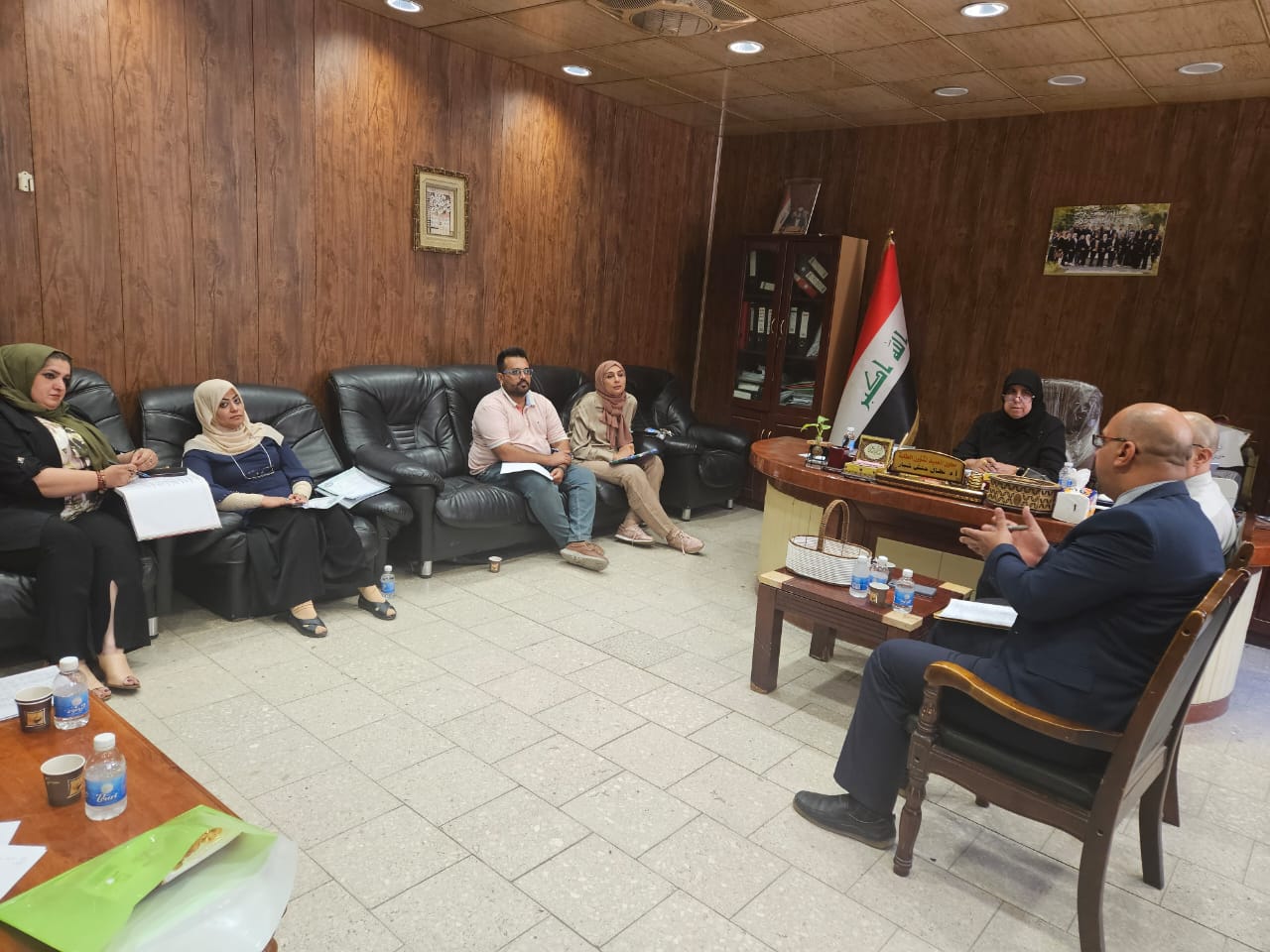 •المحافظة على البيئة الجامعية: التأكيد على ضرورة الاهتمام بالممتلكات العامة وصيانة البنى التحتية للأقسام العلمية، مع نشر ثقافة الوعي الصحي وتشجيع الطلبة والمنتسبين على الاستفادة من خدمات فريق الضمان الصحي المتواجد يومياً في الكلية لاستلام دفاتر الضمان الصحي.