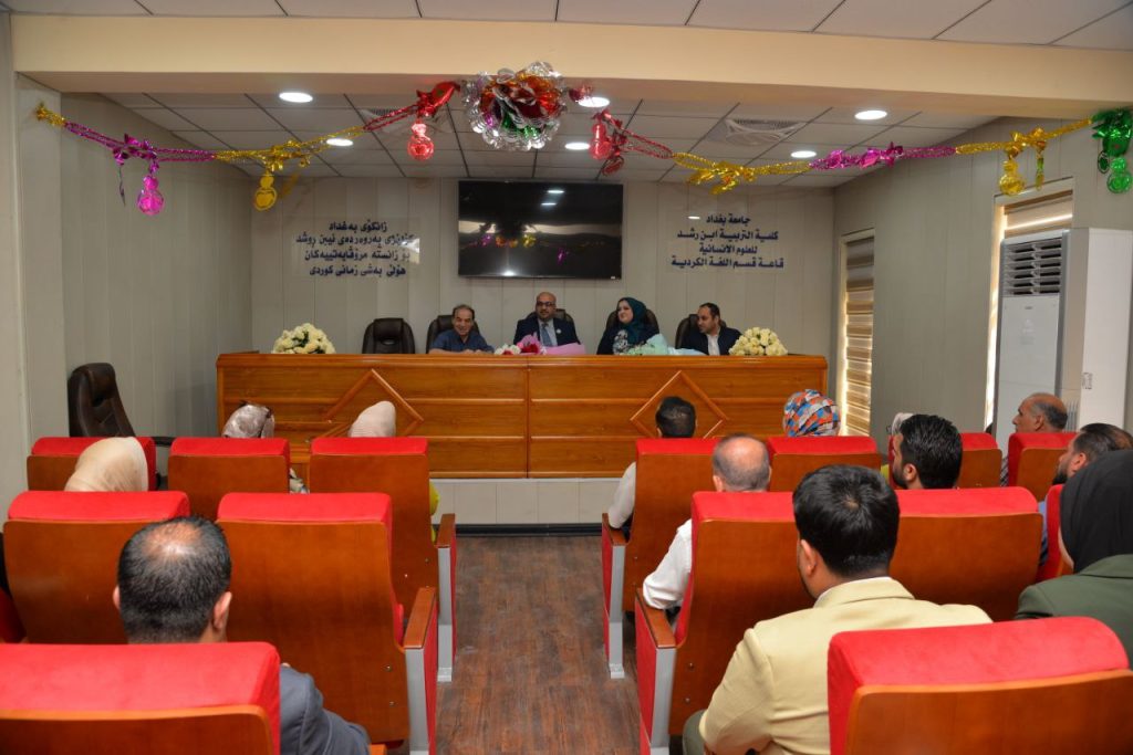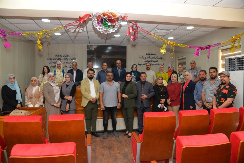بتوجيه من عميد كلية التربية ابن رشد للعلوم الانسانيه بجامعة بغداد الاستاذ الدكتور علاوي سادر جازع ، افتتحت قاعة للمناقشات في قسم اللغة الكردية من قبل معاون العميد للشؤون الادارية والمالية الدكتور محمد عبد الواحد جياس اليوم الاربعاء الموافق ١/١٠/٢٠٢٥ .