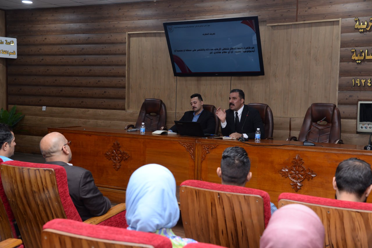 بتوجيه عميد كلية التربية ابن رشد للعلوم الانسانية بجامعة بغداد الاستاذ الدكتور علاوي سادر جازع ,واشراف معاون العميد للشؤون الادارية والمالية الدكتور محمد عبد الواحد جياس , اقامت كليتنا وبالتعاون مع جهاز الامن الوطني ندوة توعوية بعنوان (التطرف العنيف المؤدي الى الارهاب).