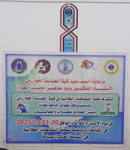 وقد هنّأ عميد الكلية أ.د علاوي سادر جازع ومعه معاون العميد للشؤون الادارية والمالية أبناءهم الطلبة المشاركين، مثمّنين جهودهم وتمثيلهم المشرف للكلية، ومؤكدين دعمهم الدائم للأنشطة الرياضية التي تسهم في صقل مهارات الطلبة وتعزيز روح العمل الجماعي، ومتمنين لهم المزيد من التفوق والنجاح في البطولات القادمة.
