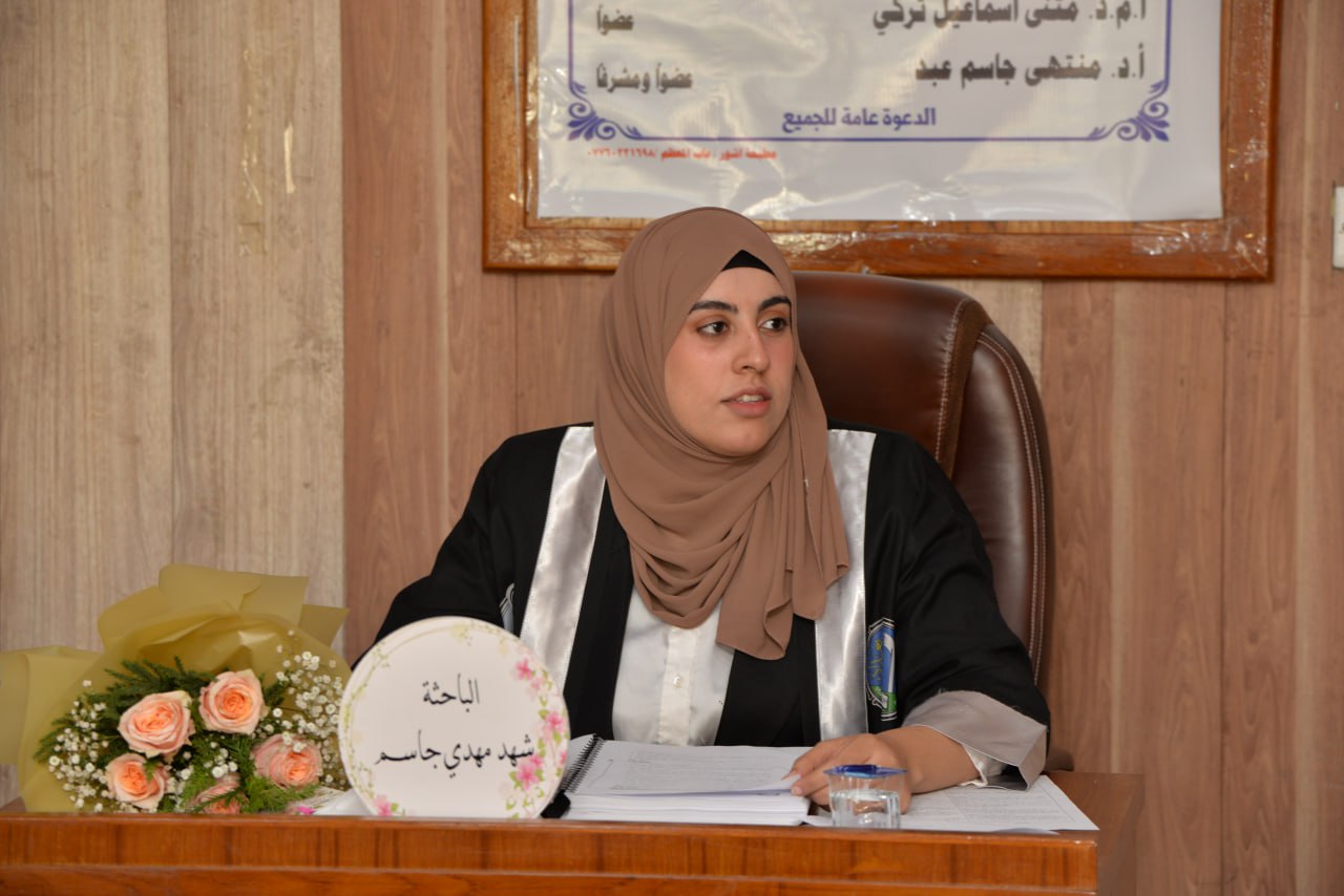 شهدت كلية التربية ابن رشد للعلوم الانسانية بجامعة بغداد مناقشة رسالة الماجستير بعنوان (ادارة الاحتواء وعلاقتها بالصراع التنظيمي عند رؤساء الاقسام العلمية في الكليات الاهلية) ,للباحثة من قسم العلوم التربوية والنفسية (شهد مهدي جاسم) تخصص الإدارة التربوية, و تألفت لجنة المناقشة من الاستاذ الدكتور سامي عبد الفتاح رؤوف رئيسا ,والاستاذ الدكتور منتهى جاسم عبد عضوا ومشرفا ,والاستاذ المساعد الدكتور مازن داود سلمان عضوا , مع الاستاذ المساعد الدكتور مثنى اسماعيل تركي بصفة عضو خارجي من جامعة الانبار / كلية التربية للعلوم الانسانية.