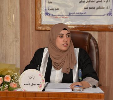 ناقشت كلية التربية ابن رشد للعلوم الانسانية بجامعة بغداد رسالة الماجستير الموسومة بــ (الارتباط بين استراتيجيات التنظيم الذاتي و الأداء في الكتابة لدى طلبة الجامعة العراقيين دارسي اللغة الإنكليزية لغة اجنبية) للباحثة من قسم اللغة الانكليزية (مريم عبدالناصر طلال) تخصص طرائق تدريس اللغة الانكليزية, وضمت لجنة المناقشة كل من الاستاذ الدكتور سلام حامد عباس رئيسا ,والاستاذ الدكتور ضياء مزهر خريبط عضوا ومشرفا , وعضوية الاستاذ المساعد الدكتور اسماء سري محمود , مع الاستاذ المساعد الدكتور رغد خلف عليوي بصفته عضوا خارجيا من كلية التربية – الجامعة المستنصرية .