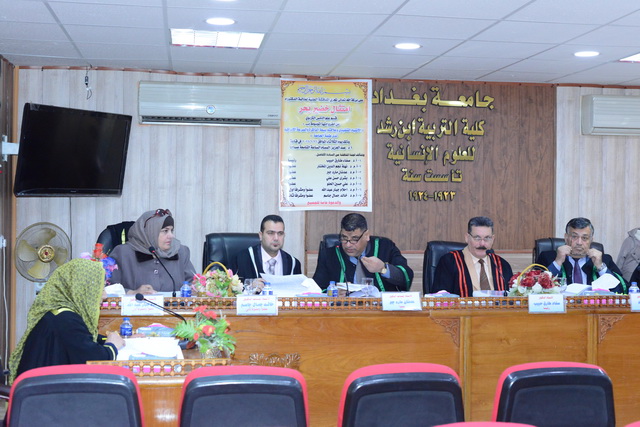 تمت مناقشة أطروحة الدكتوراه الموسومة بـ ( الانتباه التنفيذي وعلاقته بسعة الذاكرة والسرعة الادراكية لدى طلبة الجامعة ) للطالبة ( أمتثال خضير بحر ) من قسم العلوم التربوية والنفسية في كلية التربية أبن رشد يوم الثلاثاء الموافق 26/1/2016 في قاعة أ.د عبد العزيز البسام .