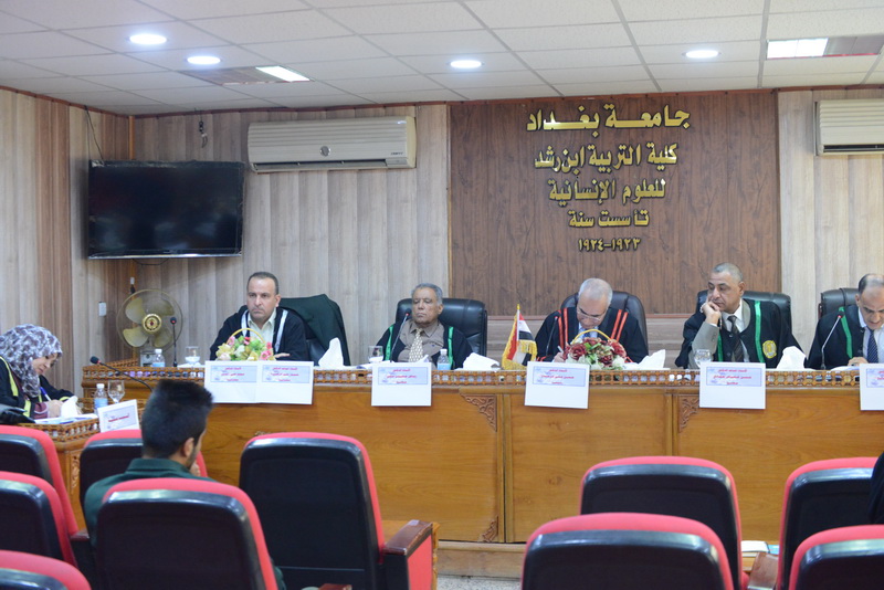 مناقشة اطروحة الدكتوراه الموسومة بـ (بناء دليل لتعليم اللغة العربية للصف الرابع الابتدائي) للطالبة (ليلى كاظم سبهان) من قسم (العلوم التربوية والنفسية) في كلية التربية أبن رشد تخصص (ط.ت اللغة العربية) يوم الخميس الموافق 8/9/2016 في قاعة (أ.د عبد العزيز البسام).
